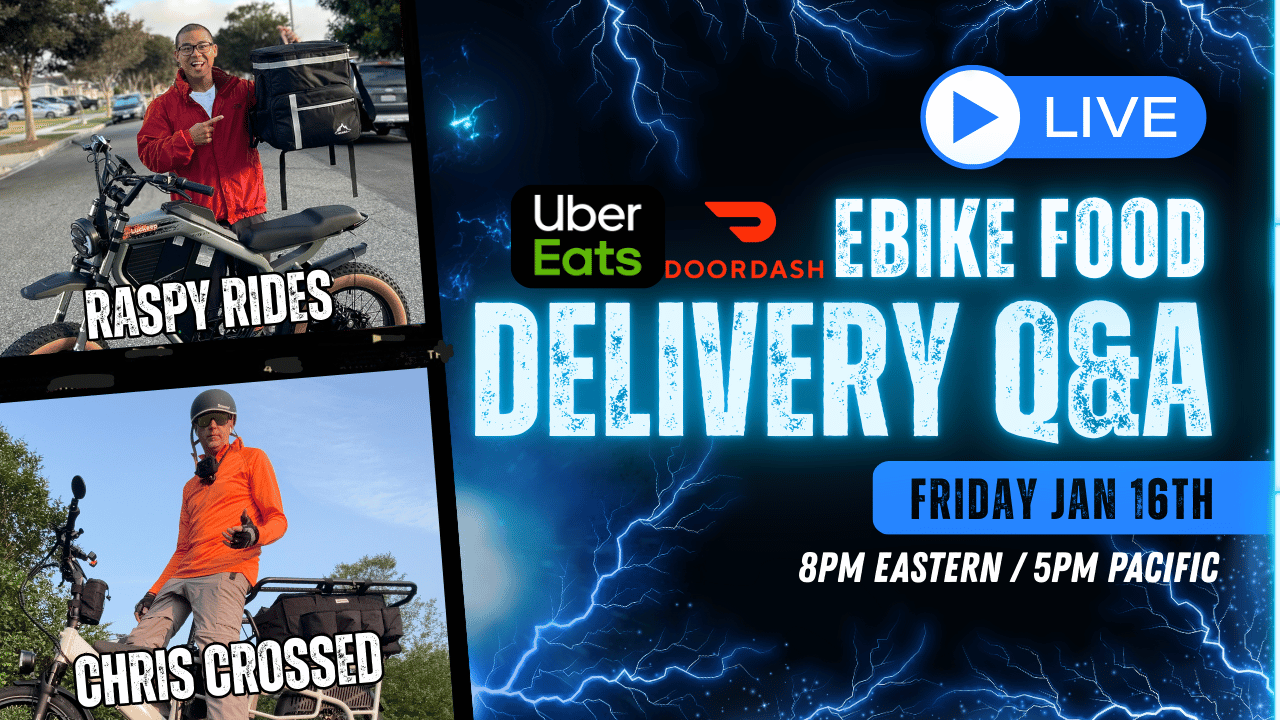 Everything You Ever Wanted to Know About Ebike Food Delivery I went live with fellow YouTuber Raspy Rides to talk about our experience delivering food (Uber Eats / DoorDash)...